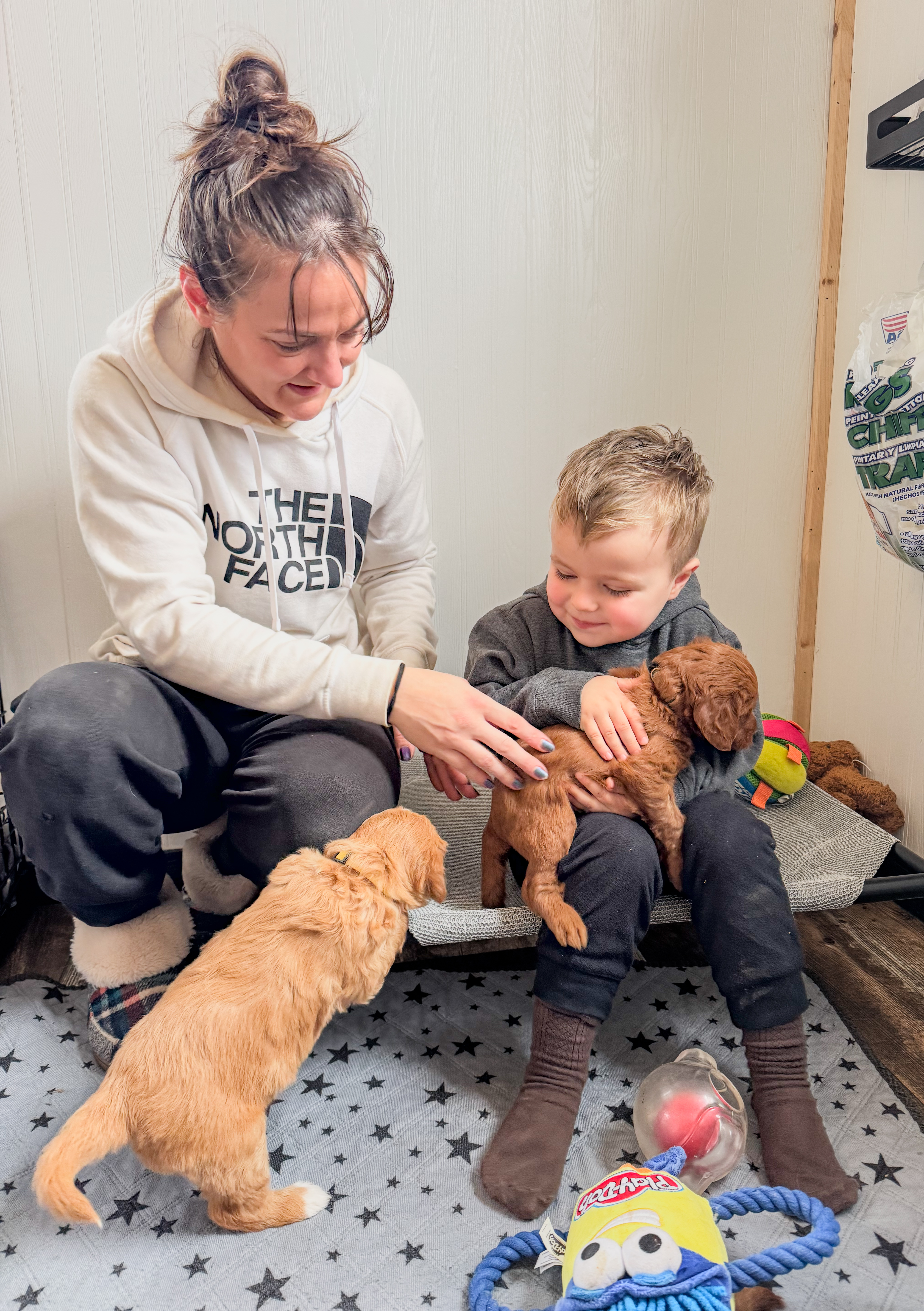 Welcome to Kennel in the Pines – your premier destination for top-quality Goldendoodles, Bernedoodles and Golden Mountain Doodles in Wisconsin. As a small, home-based breeding program, we are dedicated to upholding the highest standards and incorporate elements of the BAB program as well as Puppy Culture. We pride ourselves on ensuring that every puppy is raised with the utmost care and attention. Discover the perfect addition to your family with our amazing Goldendoodles, Bernedoodles and Golden Mountain Doodles meticulously bred and lovingly raised in our nurturing family home.