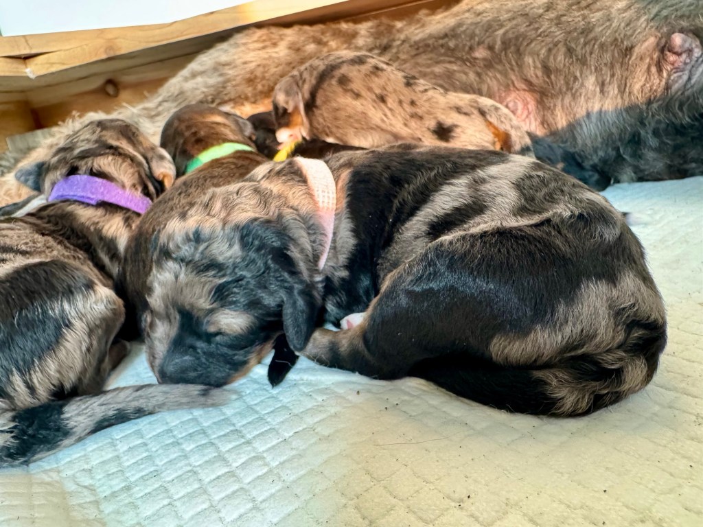 We’re so excited to share that our sweet Bernedoodle mama Juneau welcomed her Disney-themed litter yesterday, August 7th! Everyone is healthy and doing great.
