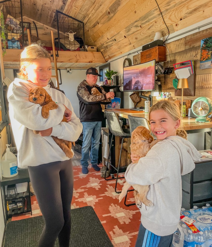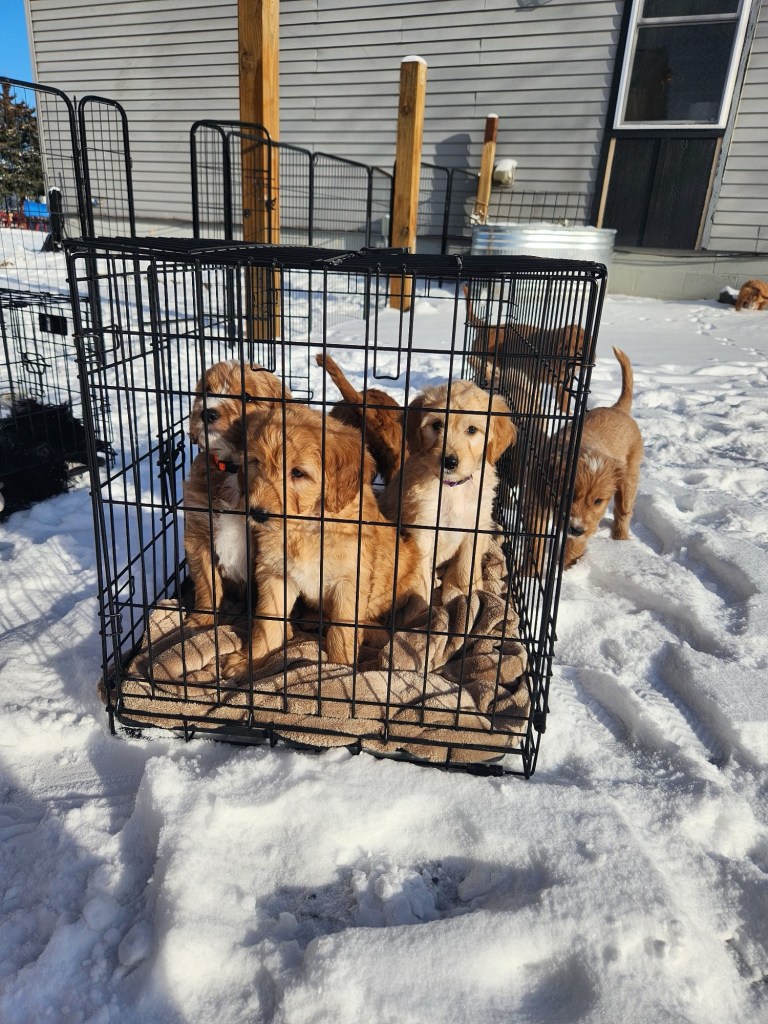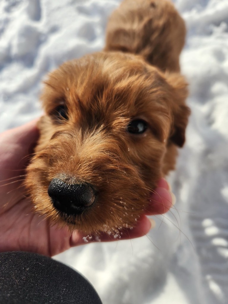 We spend a lot of time holding and handling them & letting them fall asleep in our arms feeling safe and secure🤎.. at this age Puppies learn to work and problem solve, we get creative start having them walk on grass, snow, pavers, experiencing new things each day! Everyone is pudgy and healthy 🥰 eating puppy mush 3 times per day.. mama is still feeding several times per day and during the night but slowly starting to wean.