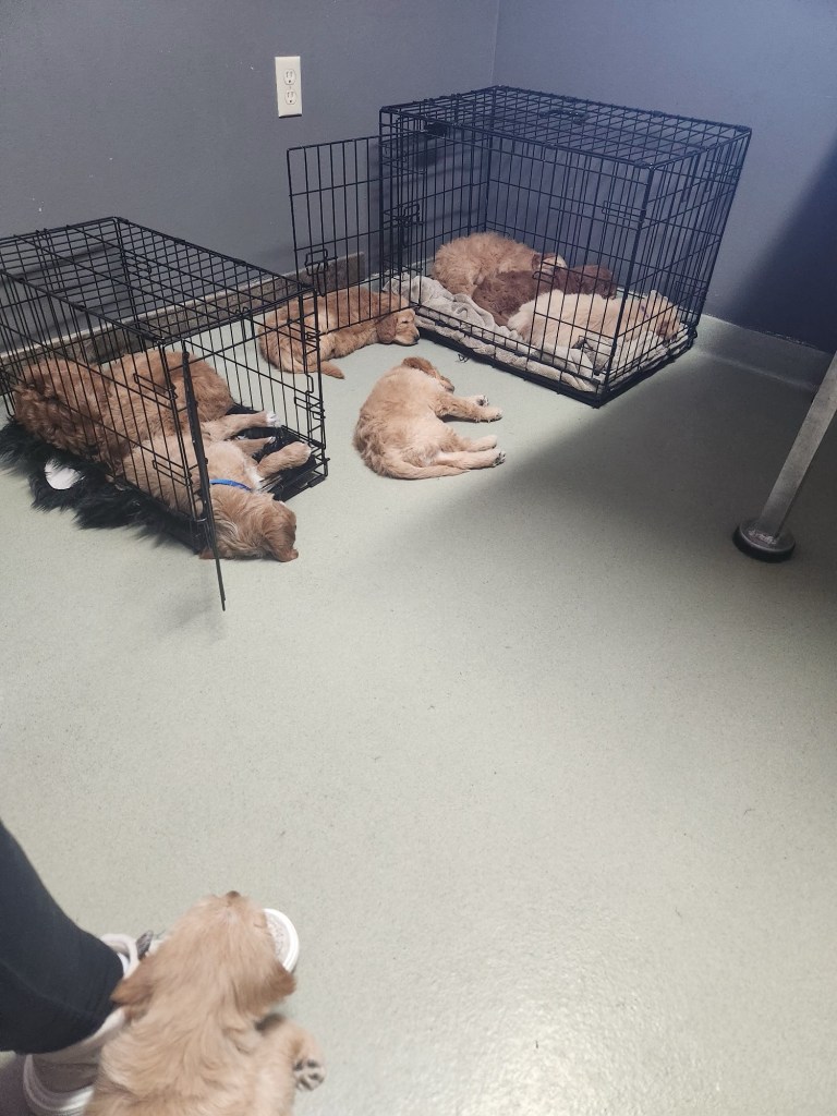 We will be 6 weeks old this week!!! We are growing so fast, this litter is so balanced and very fast learners.. this is a critical stage for socialization— they need to be exposed to a range of people, places, and experiences to develop a well-adjusted personality—6-week-old pups are very playful!! They are actively learning social skills from their littermates, growing more independent from mama, and still need a lot of sleep and may be a bit clingy when separated from their siblings.